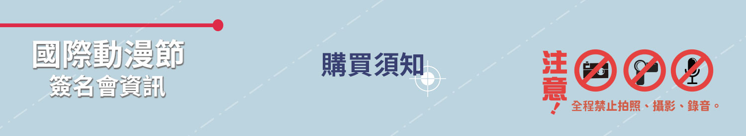 10. 現場禁止拍照及攝影錄音等任何記錄 ,簽名會時務必將手機相關3C產品收入隨身包包,請各位讀者配合。